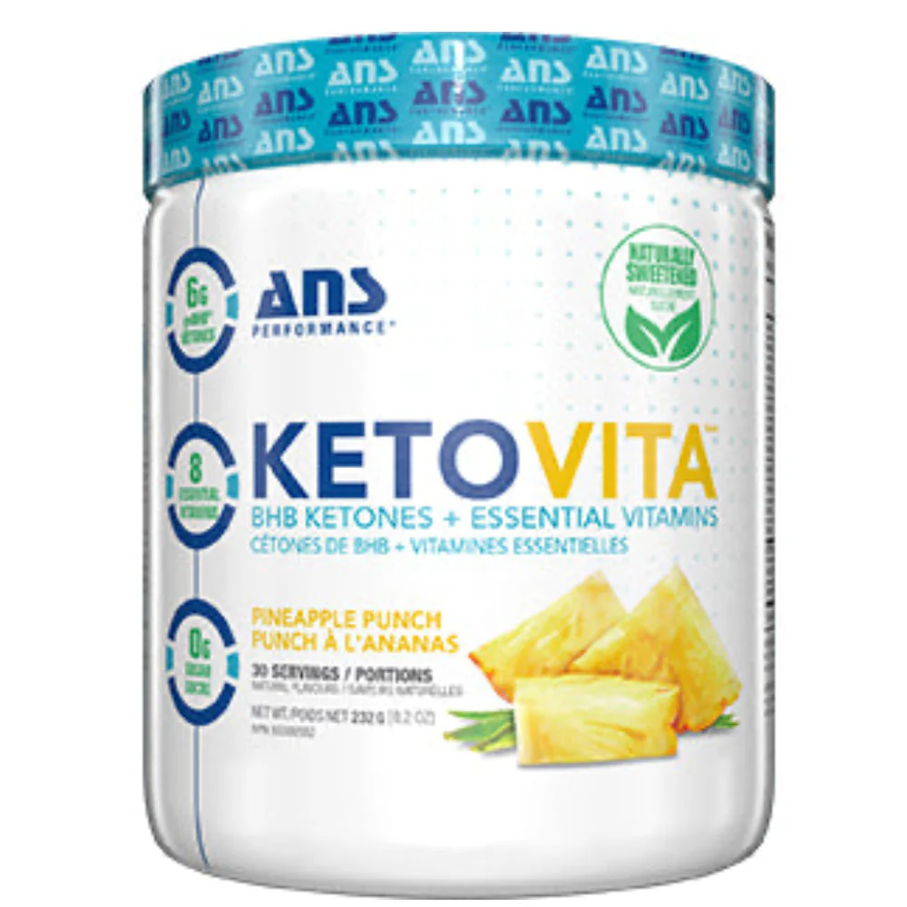 Elevate your keto journey with ANS Performance Ketovita, a premium supplement that masterfully blends BHB Ketones with essential vitamins to support a ketogenic lifestyle. Ideal for those seeking enhanced physical and mental performance, Ketovita offers an ideal way to boost ketone levels and energy metabolism. Whether you're striving for ketosis or looking to optimize your workouts, this high-quality exogenous ketone supplement, available in delicious flavors like Pineapple Punch, Pink Lemonade, and Cucumber Lime, is designed to bring you closer to your health and fitness goals."